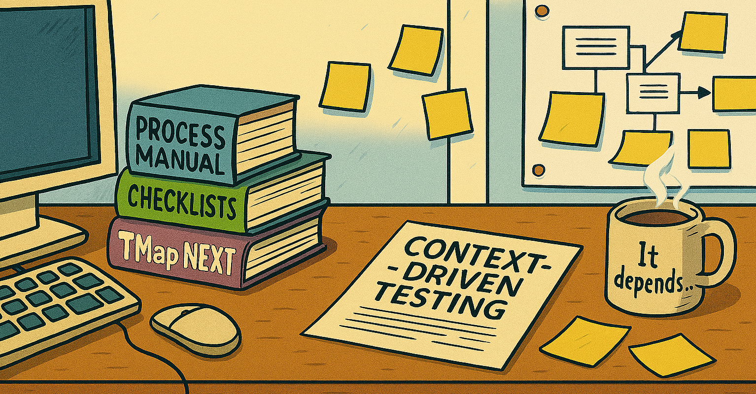 And it’s not about TMap vs. context-driven. You can swap out TMap in my statement above against any other framework. Try swapping in “session-based test management” for instance. It’s a go-to test framework for many testers in the CDT community, including myself. I love working with session-based testing and SBTM. But… If I go into a new context and I immediately start thinking about how I could apply SBTM to this context, then I wouldn’t be context-driven! (see https://context-driven-testing.com/ under “Contrasting context-driven with context-aware testing.” and “Contrasting context-driven with context-oblivious, context-specific, and context-imperial testing.”)