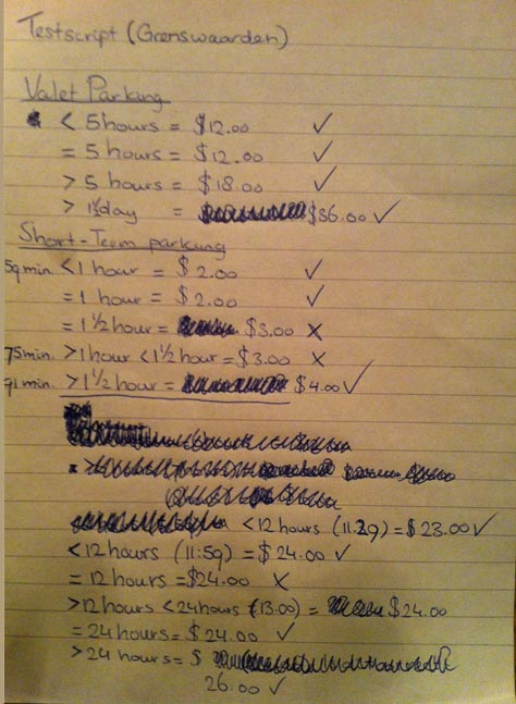 I gave the group a sneak preview of the parking calculator (original page is gone, but the calculator cab be found here on Markus website: https://www.shino.de/parkcalc). I also showed them the webpage with the information on the car parking and the parking rates. While preparing the dojo I thought the participants would like to do some preparation while eating pizza. I figured they could think about their approach and maybe write down some test ideas or other stuff they thought that could be useful. But the group wanted to start right away. There were some questions about the exact purpose of testing this application. I told the group, while playing the role of product owner, the goal is to inform me if this calculator needs adjustments.