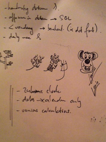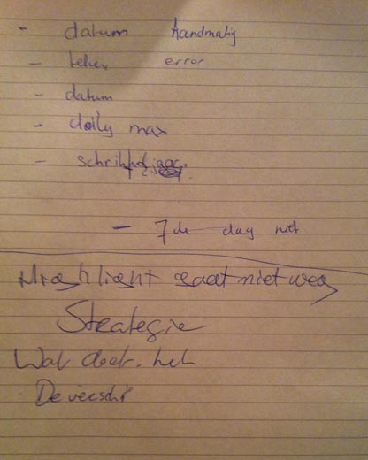One of the participants created a list of test ideas before he took his place behind the laptop. It was fun to see a lot of different styles and approaches. I also noticed that being observer is a rather difficult job. Not a lot of notes were taken on observations despite the checklist on the wall. Most of the participants focussed their observations on the testing and the application being tested, rather then on the people testing and their communication and collaboration.