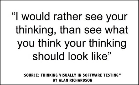 Did you have a chance to see the webinar “Thinking Visually in Software Testing” by Alan Richardson at the EuroStar Virtual Conference May 16th last? If not I suggest you do that now before you read this column. Also very interesting is the great blog post Fiona Charles has written about this topic with the beautiful title “Breaking the Tyranny of Form”.